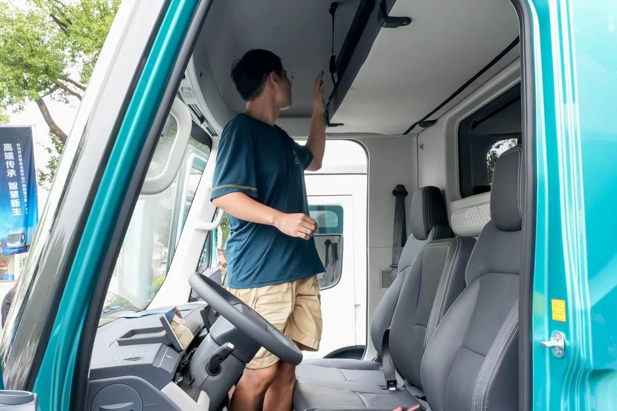 在静态品鉴环节,欧马可Z的座舱设计征服了现场卡友。“最直观的感受就是平地板设计,内部空间特别大!”一位有着十几年驾龄的老司机坐进车内感叹道,“以前手刹在座椅旁边,想躺下休息特别硌人。现在欧马可Z把手刹去掉了,中间彻底腾空,副驾没人时侧躺休息特别方便。”与此同时,欧马可Z全车超大储物空间也备受卡友好评:“各种收纳格又多又大,平时跑车带的票据、杂物全都能装下,收纳空间比我以前开过的车都要大。”现场卡友们的交流中,洋溢着卡友们对这种“悦己”运输生活的期待。